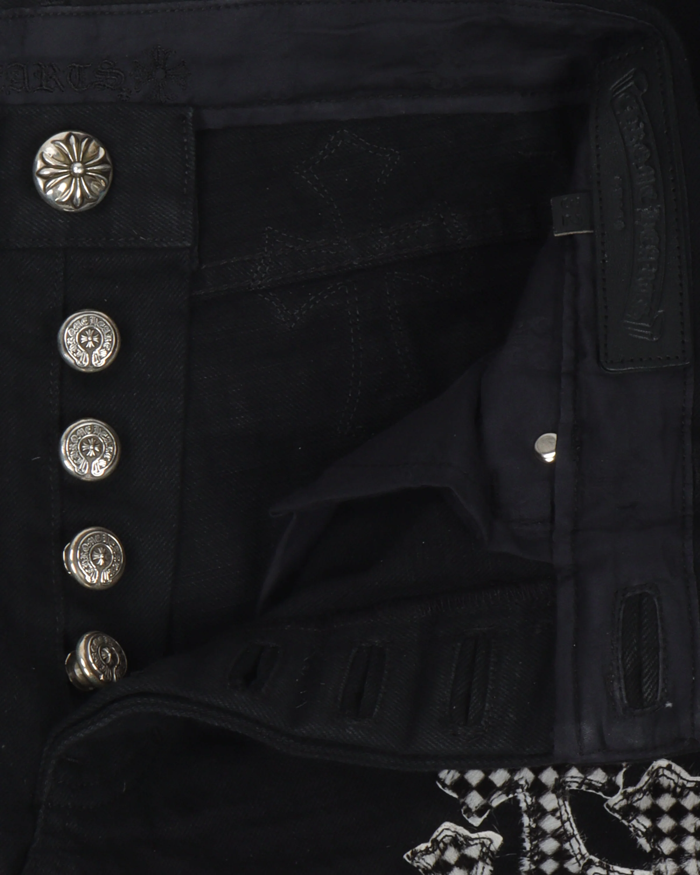 -70%Checkered Cross Patch Fleur-Knee Jeans w/ 34 Cross Patches—